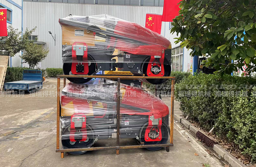 10月5日,福瑞得2臺(tái)雙鋼輪座駕壓路機(jī)打包發(fā)往威海。