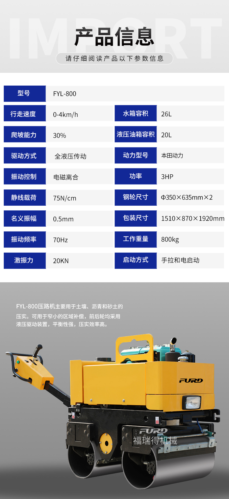 主要用于溝渠基礎,道路,體育場地的壓實整平,也可用于壓實瀝青表面的作業(yè)。