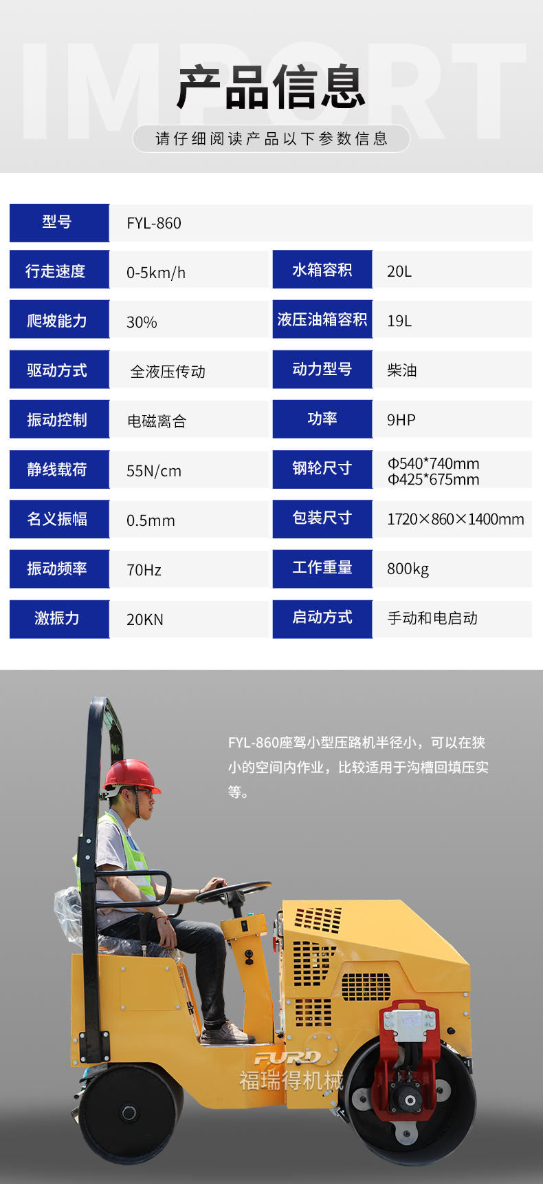 主要用于溝渠基礎(chǔ),道路,體育場(chǎng)地的壓實(shí)整平,也可用于壓實(shí)瀝青表面的作業(yè)。