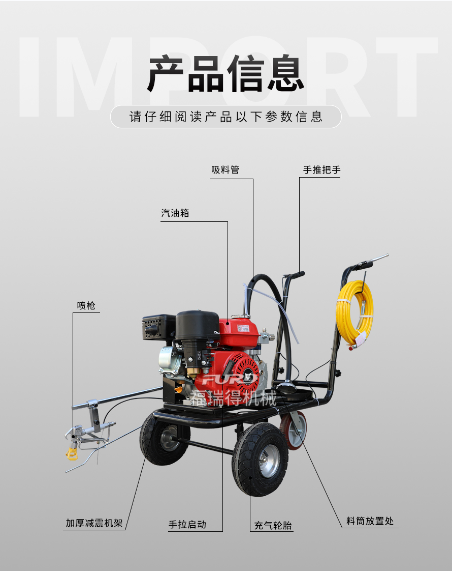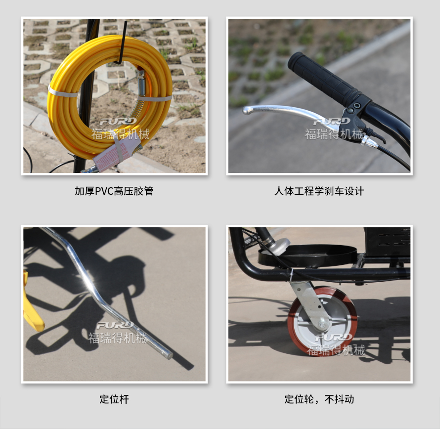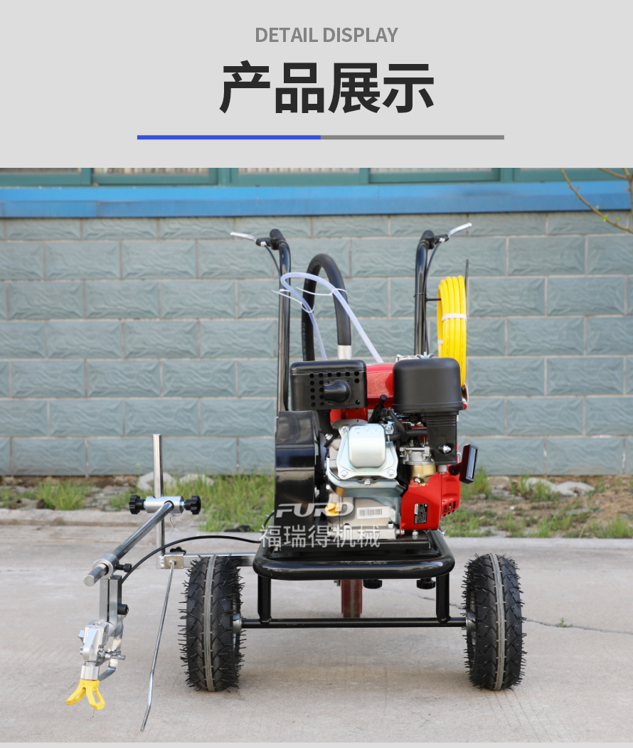 小型手推式道路劃線機(jī)是一種在道路、停車場(chǎng)、廣場(chǎng)和跑道等平整地面上劃出不同約束、指引和警示等規(guī)則限制標(biāo)志的路面施工機(jī)械。最常見的就是在馬路上劃斑馬線,在路上劃車庫線、停車線等等應(yīng)用于小型工程、短途施工,活動(dòng)方便,靈活操作。