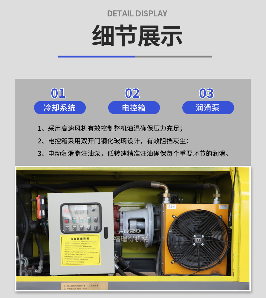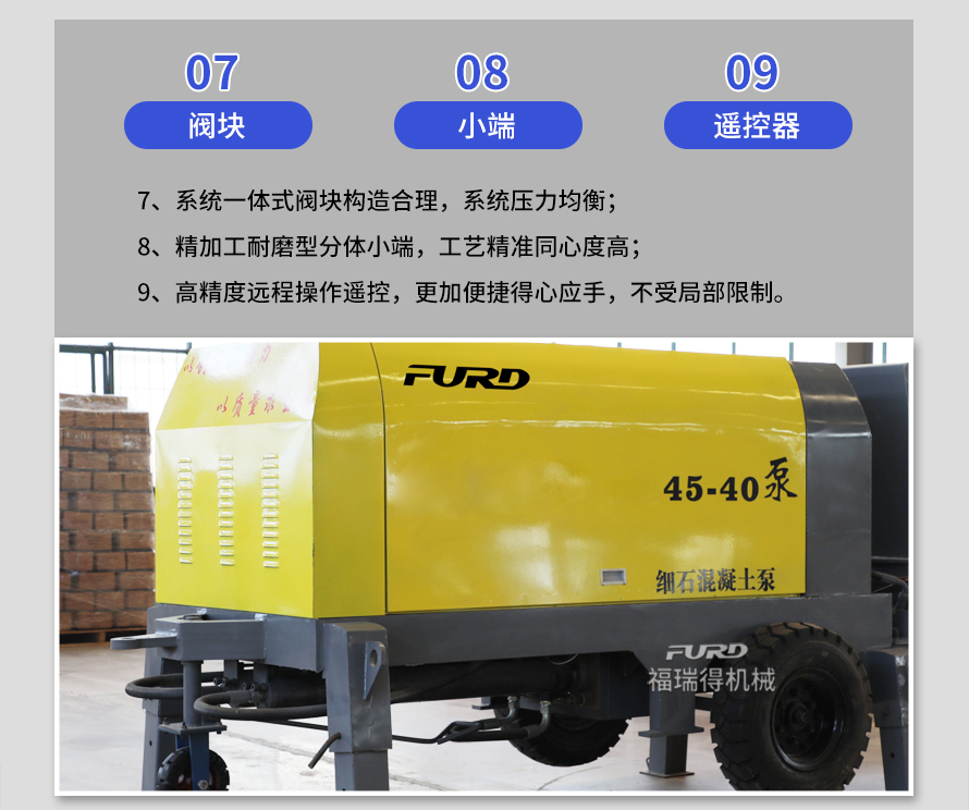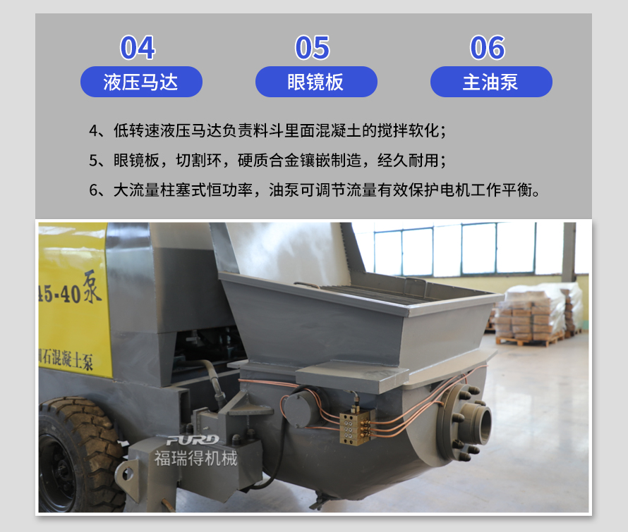 產(chǎn)品介紹: 1,大流量 采用加粗料缸,讓機(jī)械每一次循環(huán)出料多20% 2,效率高 移動(dòng)便捷全部采用快接式管道卡,提高工作效率 3,便捷 本機(jī)可遠(yuǎn)程遙控,操作不受地點(diǎn)限制,更加人性化 產(chǎn)品用途: 坡道灌漿,水平地面,隧道澆筑,模